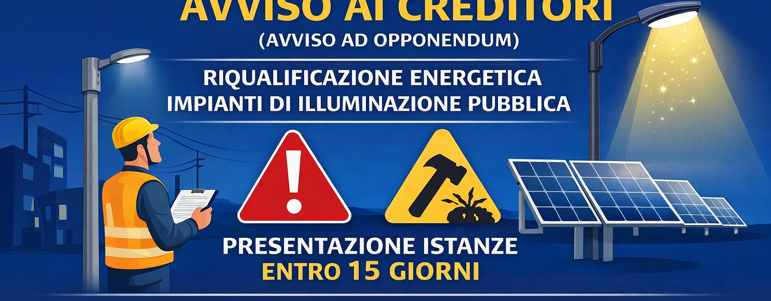 Avviso ai creditori (avviso ad opponendum) – lavori di riqualificazione energetica degli impianti di illuminazione pubblica